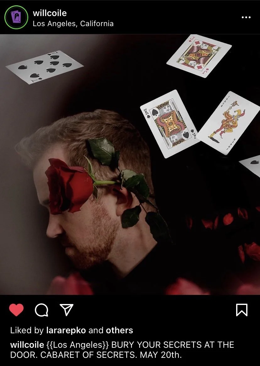 See below a few examples of taglines put to use on social platforms. “Bury your secrets at the door” became the tagline for William’s Cabaret of Secrets production. Don’t miss the full list of taglines at the bottom of the page for a truly mind-bending read…